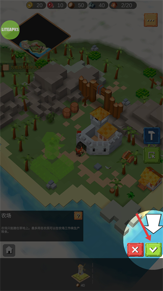 4、確認農場的布置后,點擊界面右下角的綠色對勾按鈕,即可完成本次建筑操作,保存當前設置,之后可繼續規劃其他區域的建筑布局。