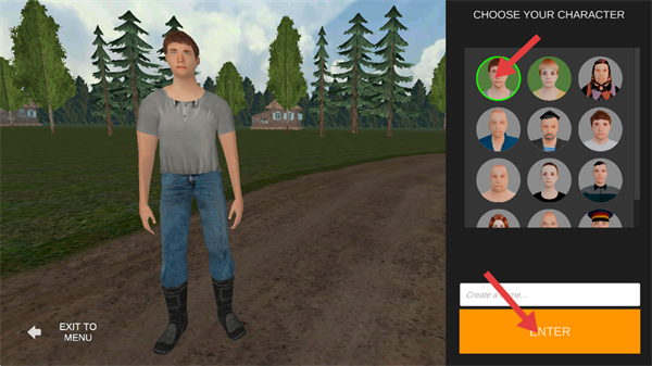 2、進入角色選擇界面,在右側角色列表中選定想要的角色形象,點擊ENTER按鈕,即可確認角色選擇并進入游戲場景。
