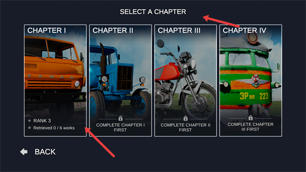 2、先完成關卡解鎖后續章節,每個關卡上顯示當前游戲進度,需依次推進章節解鎖內容。