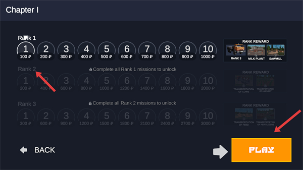 3、進入關卡界面,先完成關卡1的任務,完成全部任務后點PLAY按鈕,進入對應關卡開始游玩。