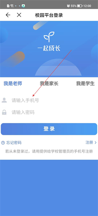 3、進入所選系統的登錄頁面,根據自身身份選擇老師家長或學生選項,以對應身份的登錄界面,準備輸入賬號相關信息完成登錄。