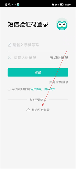 1、進入短信驗證碼登錄頁面,除常規登錄方式外,找到其他登錄方式里的校內平臺登錄選項,點擊該選項。
