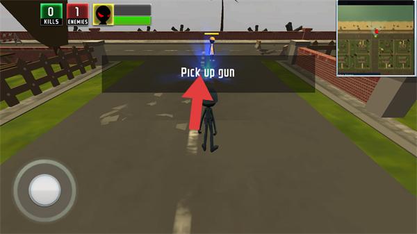 3、角色移動后,界面出現【Pick up gun】提示,前方有武器道具,需操控角色靠近該道具,完成拾取操作,獲取武器后可提升戰斗能力,為后續對戰做準備。