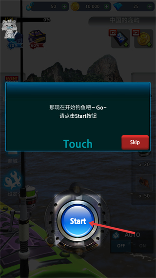 1、進入游戲后找到頁面中的Start按鈕并點擊,即可啟動釣魚流程,開始進入游戲的核心操作環節。