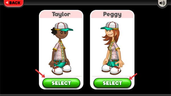 3、需選擇游戲角色,界面提供Taylor、Peggy兩個可選角色,點擊對應角色下方的SELECT按鈕,即可確定角色并進入游戲的經營環節。