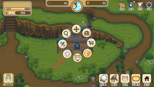 2、找到管理所建筑,點擊進入后選擇廚房相關功能按鈕,打開料理制作界面,準備進行指定料理的制作操作。