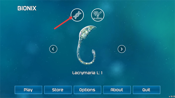1、當前生物為Lacrymaria、等級1,點擊界面上方的DNA圖標可進入變異系統。