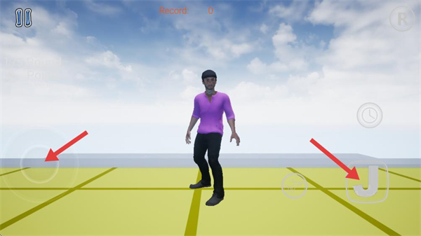 3、進入玩法場景后,通過左側按鈕控制角色移動,右側按鈕觸發動作,操控角色在場景中互動,完成對應的玩法操作。