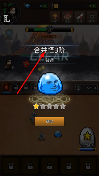 4、完成怪物合并后,獲得合并怪3階普通品質,點擊確定按鈕,該高階合并怪將加入戰斗陣容,可繼續推進后續關卡。
