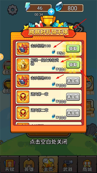 3、通過左右調整來完成成就任務,如擊殺怪物,及時領取水晶獎勵,積累資源用于升級。