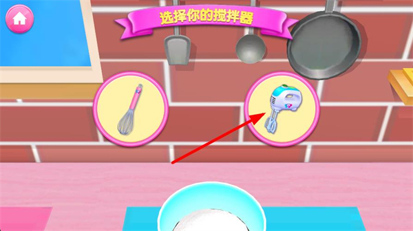 1、界面會呈現手動打蛋器和電動攪拌器兩個選項,按提示選擇的電動攪拌器,開啟甜品制作流程。