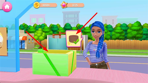 4、將制作好的甜品放入綠色包裝盒子里,界面會顯示帶有對勾的甜品圖標,把蛋糕遞給顧客即可結束本次甜品制作。