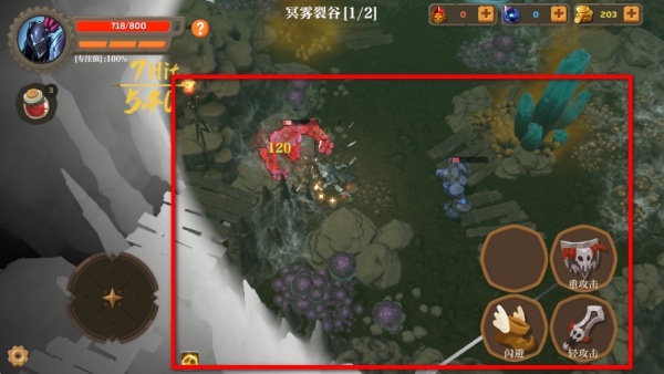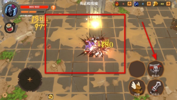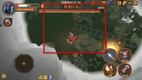 1、在場景中與敵人戰斗,攻擊時會顯示傷害數值,同時可使用右側的技能按鈕釋放對應效果,擊敗敵人能推進關卡進度,還能獲取相關資源。