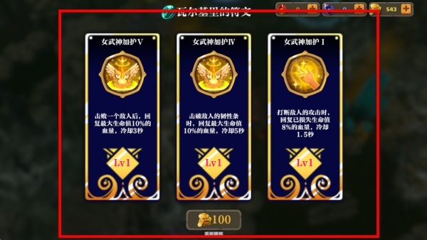 2、解鎖并選擇增益效果,不同的效果有不同的作用,比如擊敗敵人后恢復生命值,或是附加額外效果,消耗資源可解鎖更多增益來強化自身。