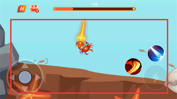 4、進入新場景如海底場景,繼續操控螃蟹移動收集目標,利用技能清理小型生物積累進度,逐步提升螃蟹的戰斗能力,可以推進游戲進程。