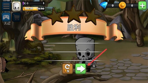 4、關卡勝利后點擊綠色箭頭按鈕結算,結算后可獲取三星評價對應的獎勵,同時解鎖下一關,若需重新挑戰可點擊刷新按鈕,優先推進關卡進度以解鎖更多功能與資源。