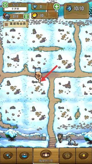 1、進入我的村莊頁面,可看到待開發的村莊區域,根據指引點擊指定位置,即可觸發建筑選擇界面,開啟村莊的建設流程。