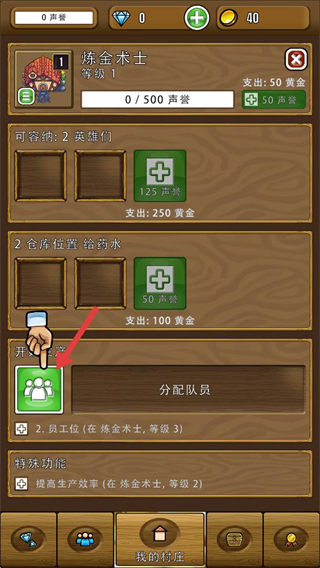 3、進入煉金術士建筑界面,可查看其等級、聲譽進度等信息,還能進行英雄容納、倉庫位置拓展等操作,點擊對應功能按鈕可解鎖相關配置項。