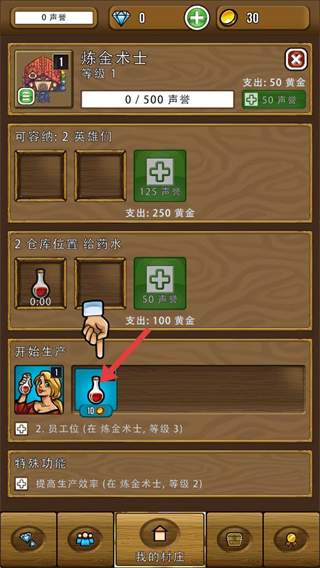 4、在煉金術士的生產界面,選擇要生產的藥水類型,消耗對應資源后即可啟動生產,生產完成后可獲得對應藥水,用于助力英雄對戰怪獸的流程。