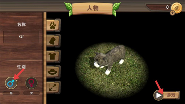 2、在人物設置界面,可設置角色名稱,選擇性別為男或女,完成基礎信息配置后點擊游戲按鈕,即可進入游戲場景。