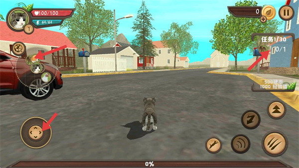 1、玩家需要捕捉老鼠與鳥類維持生存,同時警惕流浪狗群的圍攻,高層公寓窗臺可能拋出人類投喂的零食。