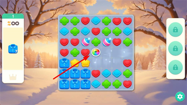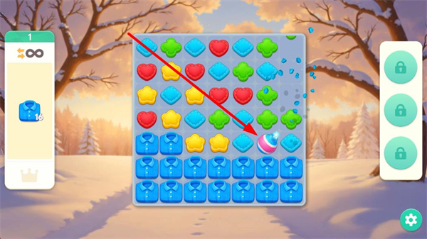 2、消除界面中的襯衫元素,會累計收集數量,消除過程中還會觸發特殊道具如彩色炸彈,助力后續范圍消除操作。