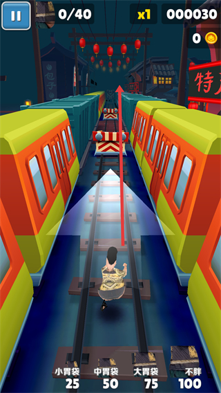 良子跑酷內置菜單是一款基于經典跑酷框架的創意改編游戲,主角由杰克替換為同人角色“大胃袋良子”。游戲保留了核心的跑酷操作,玩家通過左右滑動、上滑跳躍、下滑滑行來控制角色,在無盡延伸的鐵軌與城市景觀間高速移動。其最顯著的變化是將收集品金幣改為特色食物“燜子”,收集燜子不僅累積分數,還會直觀地改變良子的體型,使其逐漸變大。