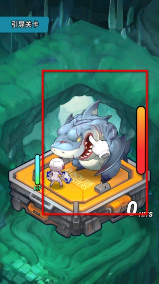 1、在引導關卡中操控角色靠近出現的鯊魚型怪物,按照指引完成初始互動,進入與該怪物的戰斗環節,準備發起攻擊。