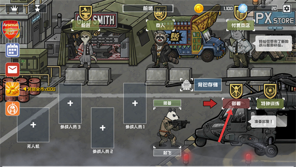 1、進入主界面后先確認參戰人員已配置,再找到直升機旁的部署按鈕,點擊后即可進入任務準備流程。