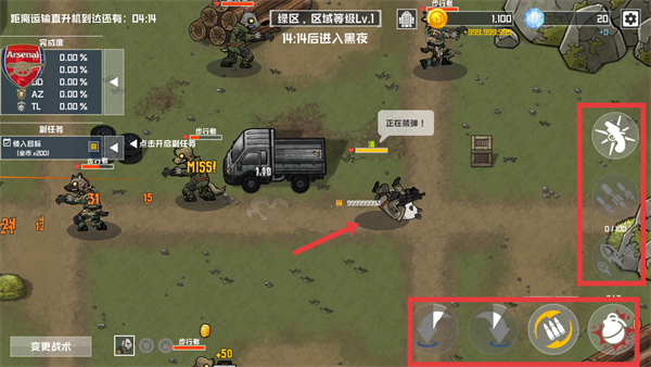 4、戰斗中若子彈不夠,就點擊填彈按鈕進行填彈,同時利用右側的技能按鈕釋放技能輔助戰斗,擊敗敵方目標可獲得獎勵。