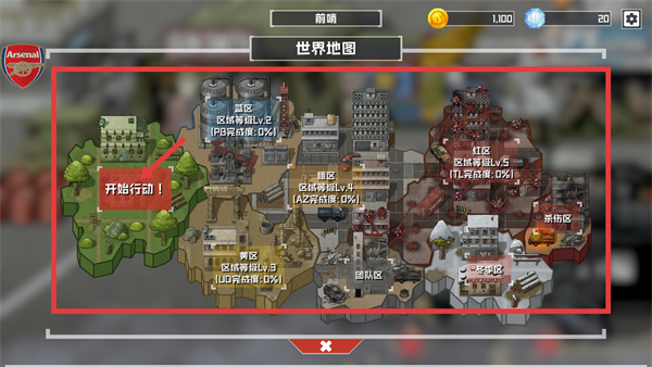 2、進入世界地圖界面后選擇目標區域,點擊區域內的開始行動按鈕,即可進入對應區域的任務場景。