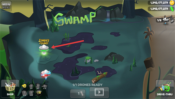 2、進入場景后找到顯示ZOMBIES FOUND的區域,點擊該區域即可定位到僵尸目標,準備進行后續的捕捉操作。