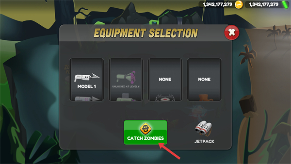 3、彈出裝備選擇界面后,選擇可用的裝備MODEL1,確認裝備配置后,點擊下方CATCH ZOMBIES按鈕,即可啟動捕捉僵尸的流程。