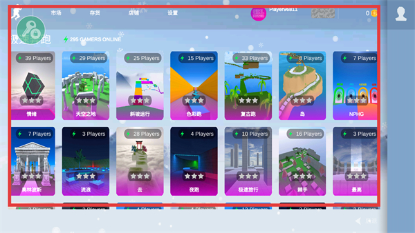 2、例如進入極速奔跑的模式選擇界面后,挑選心儀的關卡比如情緒關卡,查看對應關卡的在線玩家數,點擊關卡即可進入該關卡的游戲場景。