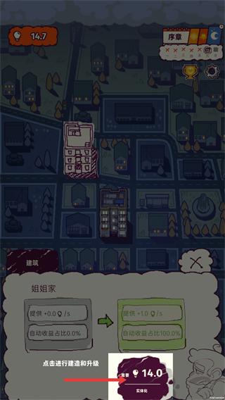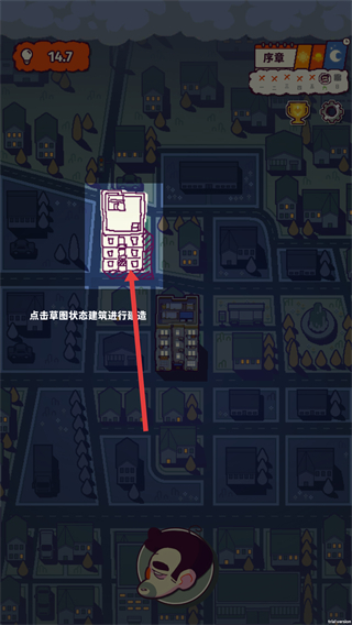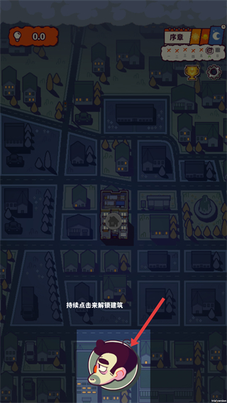 2、資源搜集到一定數值后,界面會高亮顯示可互動的建筑,點擊該建筑可進入建筑相關操作界面,此步驟是解鎖建筑功能的關鍵,需按提示點擊對應建筑。