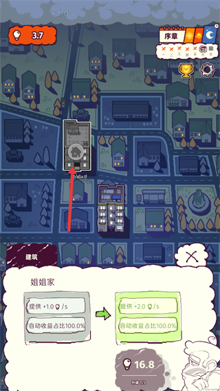 3、進入建筑界面后,可進行建筑升級操作,升級后能提升資源供給速率與自動收益占比,點擊升級按鈕即可完成操作,升級后資源獲取效率會明顯提升。