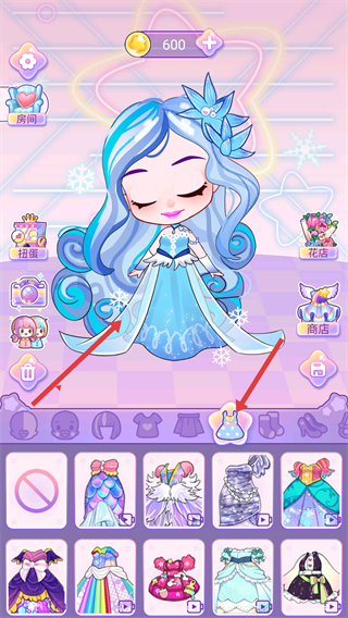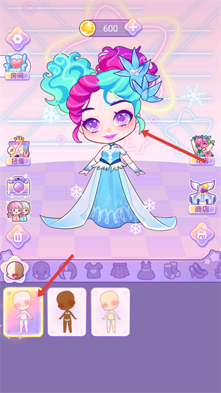 4、調整好發型服飾后,可點擊下方的形象類選項更換娃娃的基礎形象,也能點擊界面右側的花店,獲取裝飾物品來點綴娃娃的造型。