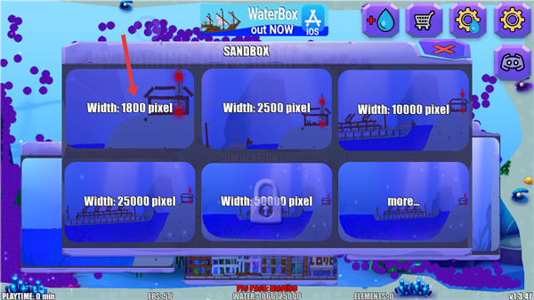 1、進入主界面后,可選擇【SANDBOX】模式開啟沙盒體驗,這是自由模擬的入口,該模式支持自主搭建場景,適合熟悉水物理機制的基礎操作。