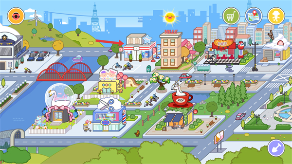 2、進入城鎮場景后,可點擊不同建筑進入對應場所,比如商店、警局等。