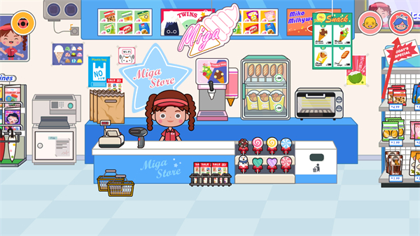 米加小鎮披薩店無廣告是一款開放場景的模擬體驗游戲,將披薩制作融入卡通小鎮的日常生活脈絡中。玩家并非經營孤立的店鋪,而是在擁有學校、公寓與公園的完整社區內操作。制作披薩需先前往超市采購面粉與番茄醬,回到廚房后需手動完成揉面、鋪料、烘烤等分步流程??竞玫呐_可端至餐廳區域售賣,也可直接邀請鄰居角色前來聚餐。
