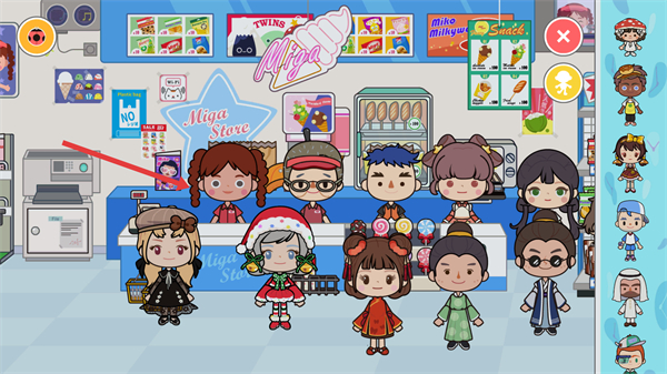 4、在商店場景中觸發角色選擇界面后,可挑選不同形象的角色替換當前形象,更換角色后能以新形象體驗后續的場景互動,豐富玩法體驗。