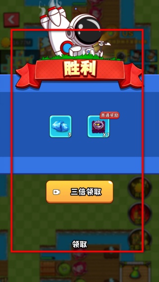 4、成功通關后會顯示勝利界面,可選擇直接領取普通獎勵,也能通過觀看內容獲取三倍獎勵,領取后即可進入下一輪的農場防御挑戰。