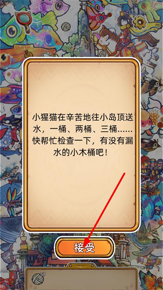 4、場景中出現任務提示,了解小貍貓送水的任務內容,點擊接受按鈕,即可開啟對應的任務進行操作。