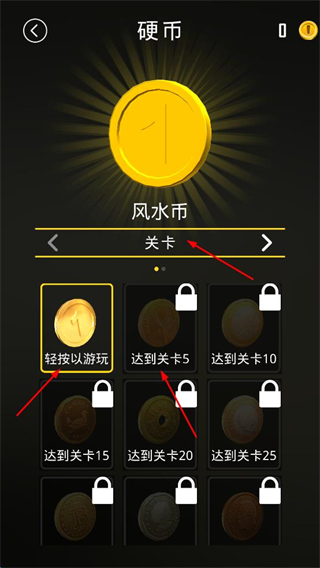 1、在硬幣選擇頁,點擊輕按以游玩的關卡1硬幣,快速進入對應關卡開始挑戰。