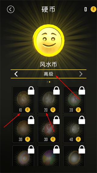 2、若想解鎖高級硬幣,積累對應數量金幣,滿足條件后點擊解鎖,更換強力硬幣。