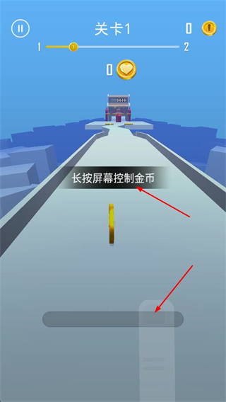 3、關卡過程長按屏幕控制硬幣移動,依據提示操作,靈活避障,保障硬幣順利前行。