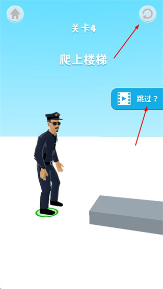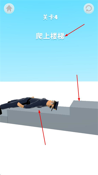 3、部分游戲設有障礙,需要操縱角色爬上樓梯,若失敗利用右上角重試按鈕,重新嘗試攀爬操作。