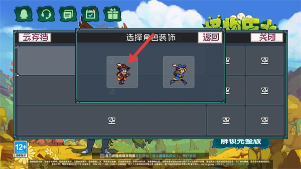2、在角色裝飾選擇界面,可切換已解鎖的角色外觀樣式,不同裝飾對應不同形象,選擇后即可應用到游戲中的角色展示上。