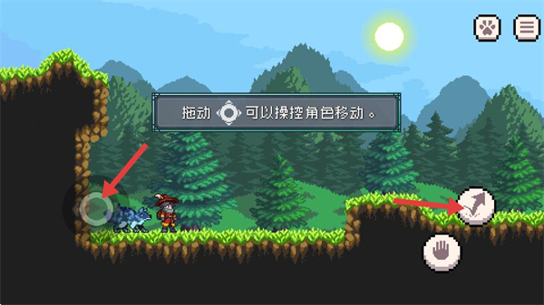 3、進入關卡操作界面,通過拖動虛擬搖桿操控角色移動,右側設交互、攻擊等功能按鈕,界面提示清晰說明基礎操作方式,便于快速上手。