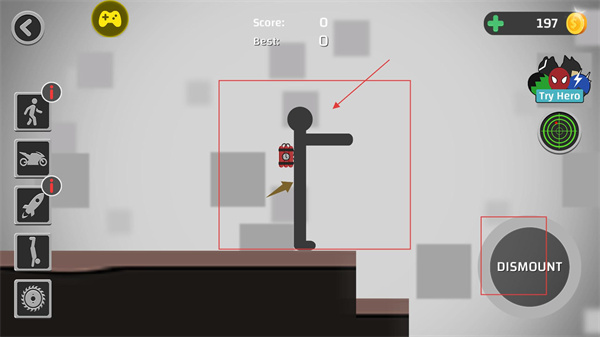 4、游戲核心操作是控制布偶角色,點擊卸除按鈕可觸發動作,過程中需借助場景地形完成翻轉、碰撞等操作,積累分數并達成任務目標。